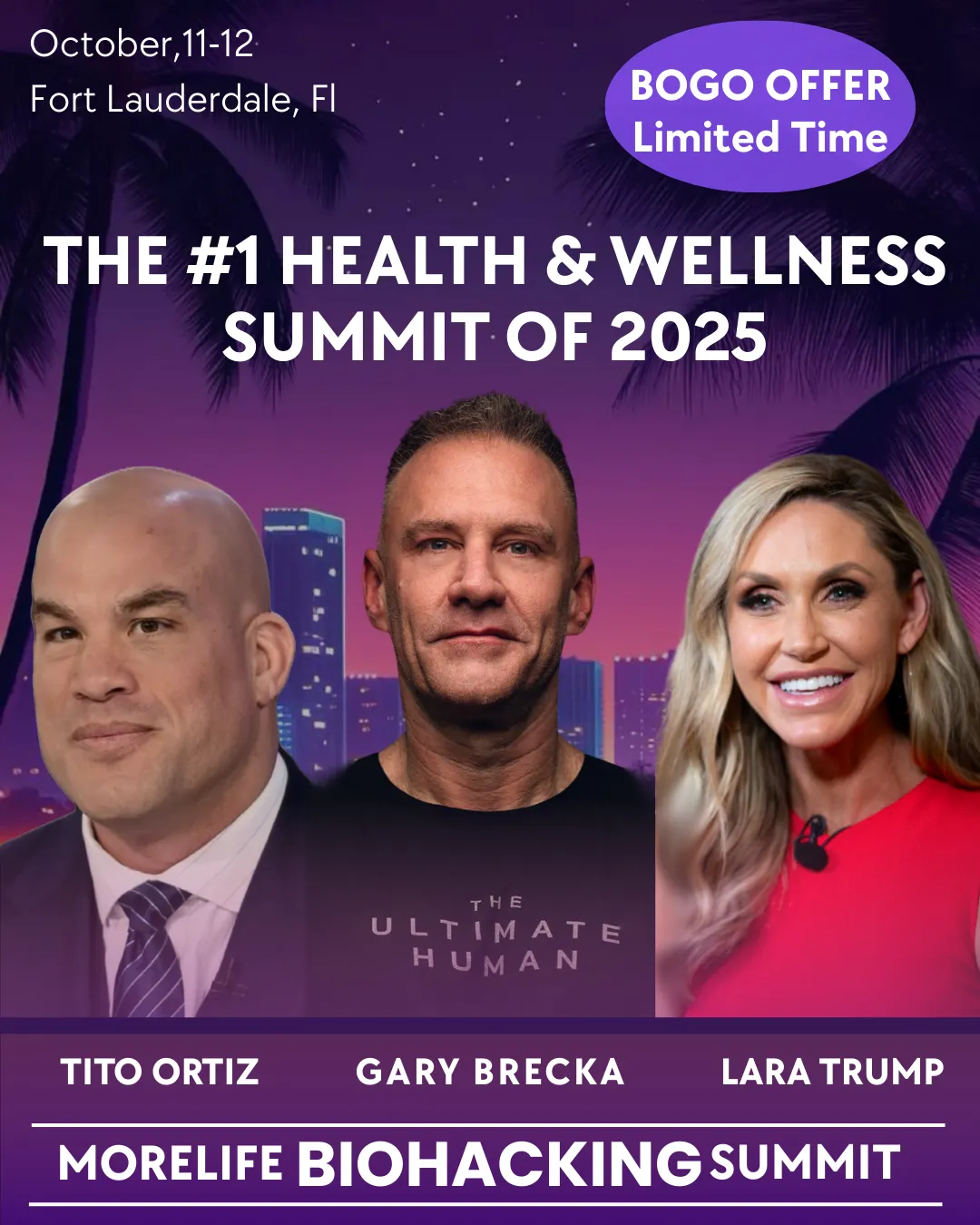 MoreLife Biohacking Summit 2025 featuring keynote speakers Lara Trump and Tito Ortiz in Fort Lauderdale, Florida